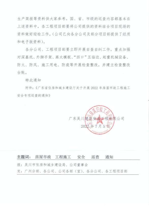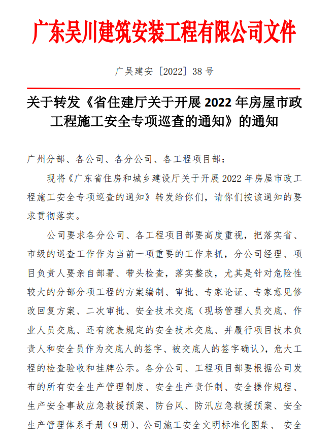 為認真落實《住房和城鄉(xiāng)建設(shè)部關(guān)于開展房屋市政工程安全生產(chǎn)治理行動的通知》(建質(zhì)電〔2022〕19號)、《廣東省安全生產(chǎn)委員會關(guān)于印發(fā)<廣東省安全生產(chǎn)大檢查工作實施方案>的通知》(粵安〔2022〕6號)工作部署,進一步壓實建設(shè)各方安全生產(chǎn)主體責任,治理施工安全突出問題,切實提升全省施工安全管理水平,按照我廳今年重點工作任務安排,結(jié)合我省城市建設(shè)安全專項整治三年行動有關(guān)工作實際,我廳通過政府購買服務的方式,委托第三方專業(yè)機構(gòu),開展全省房屋市政工程施工安全專項巡查?,F(xiàn)將有關(guān)事項通知如下: