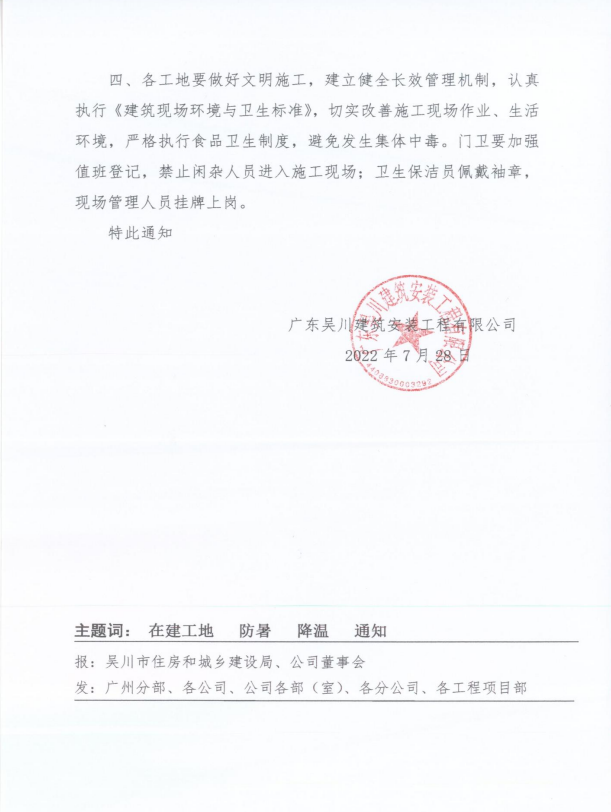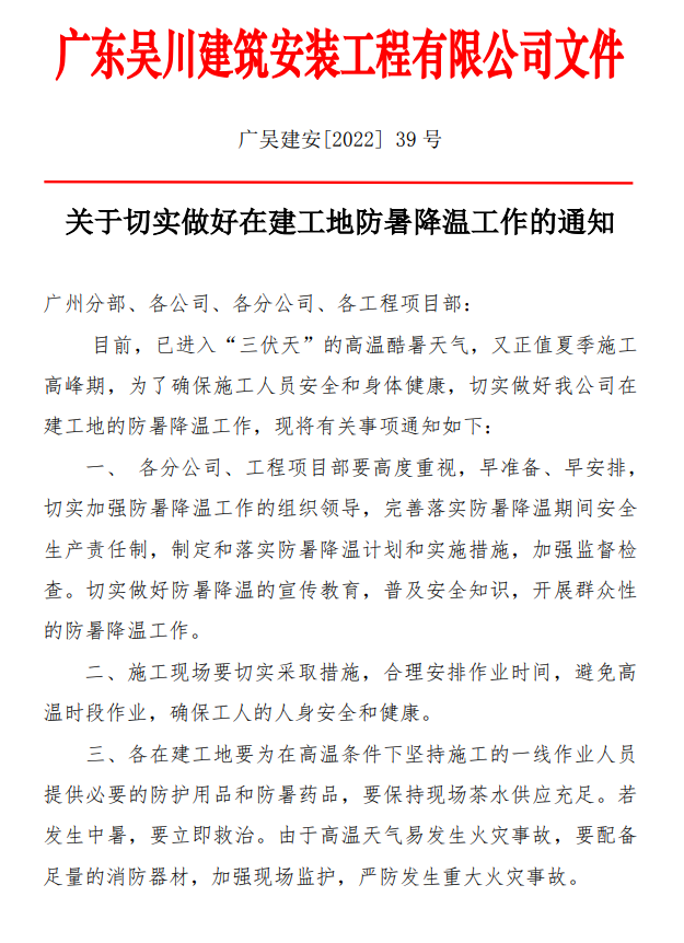 關(guān)于切實做好在建工地防暑降溫工作的通知