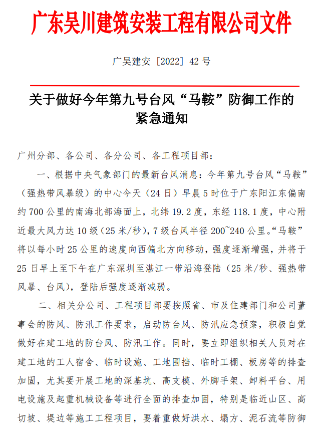 關(guān)于做好今年第九號臺風“馬鞍”防御工作的緊急通知