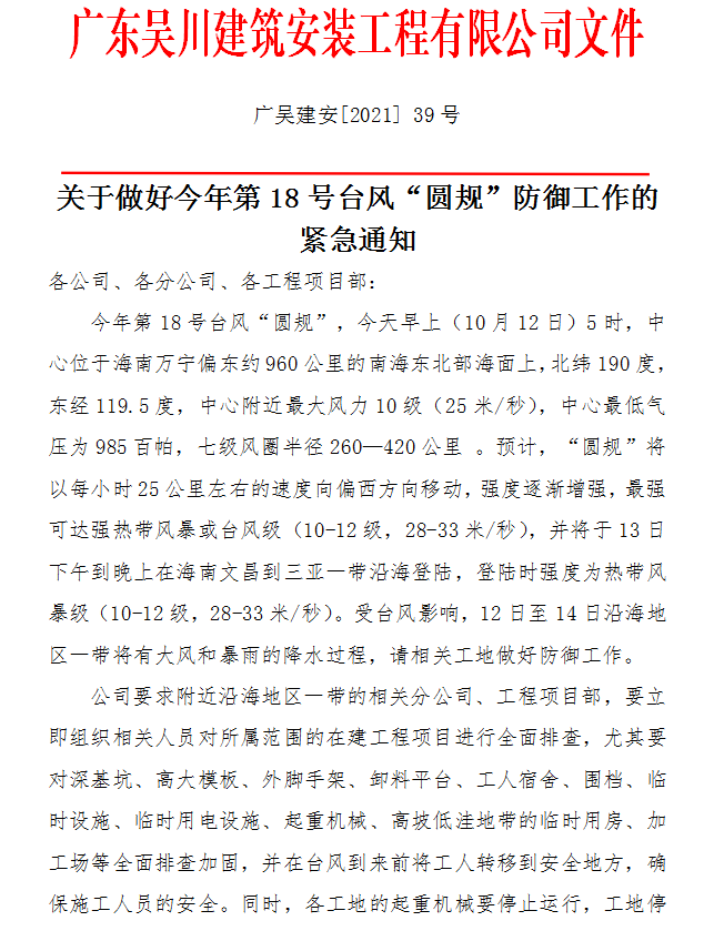 關(guān)于做好今年第18號(hào)臺(tái)風(fēng)“圓規(guī)”防御工作的緊急通知