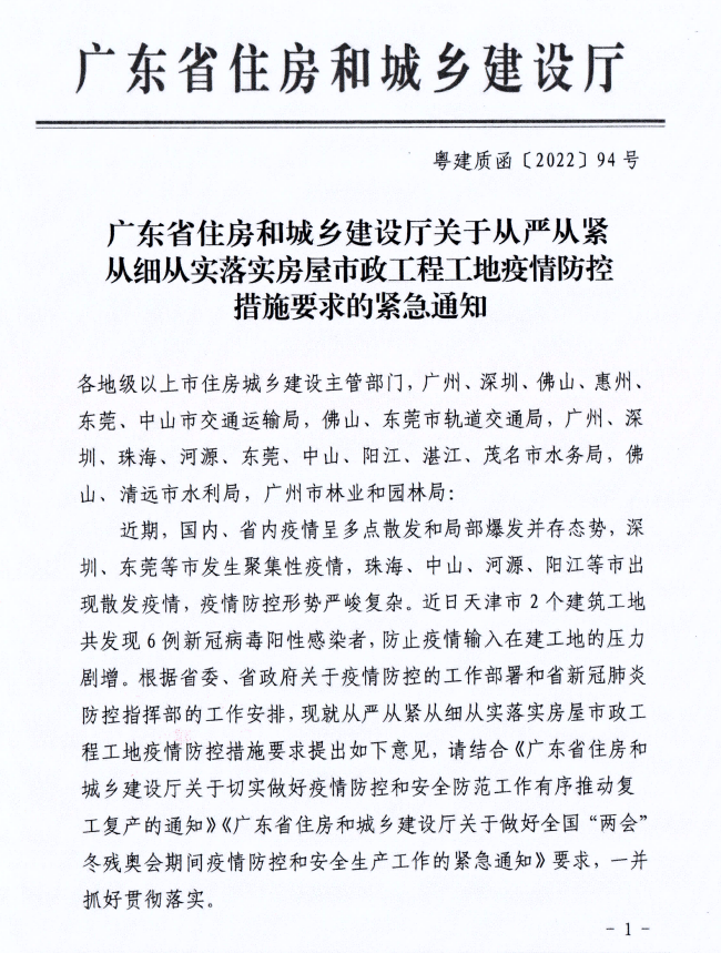 關(guān)于轉(zhuǎn)發(fā)省住建廳《關(guān)于從嚴(yán)從緊從細(xì)從實落實房屋市政工程工地疫情防控措施的緊急通知》的緊急通知